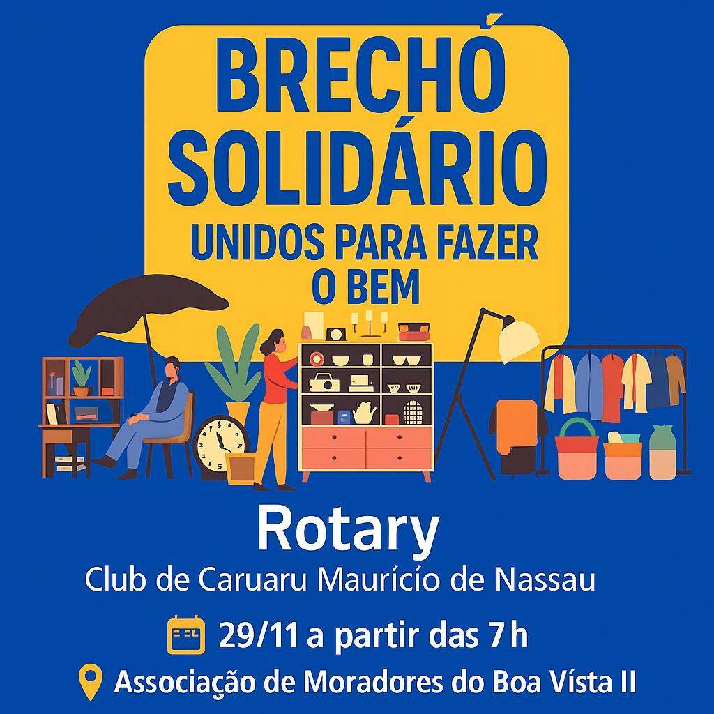O Rotary Club de Caruaru Maurício de Nassau realizou, no dia 29 de novembro, o Brechó Solidário – Unidos para Fazer o Bem, uma ação voltada à arrecadação de recursos para o fortalecimento de projetos sociais desenvolvidos pelo clube em comunidades de Caruaru. O evento aconteceu na Associação de Moradores do Boa Vista II e contou com a participação de moradores, rotarianos e voluntários.