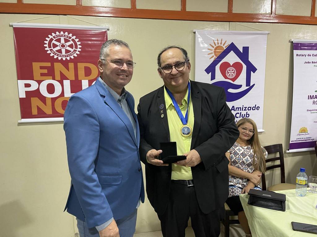 O companheiro Ricardo Carneiro (Ricardinho) presidente da Câmara Municipal do Cabo, em sua fala agradeceu ao Rotary Cabo pela Comenda do Mérito Rotário / Vicente yañez Pinzon, retribuindo ao Rotary com a Medalha Josué de Castro, mostrando gratidão aos demais associados pelo acolhimento e reconhecimento por seus serviços humanitários prestados ao município.