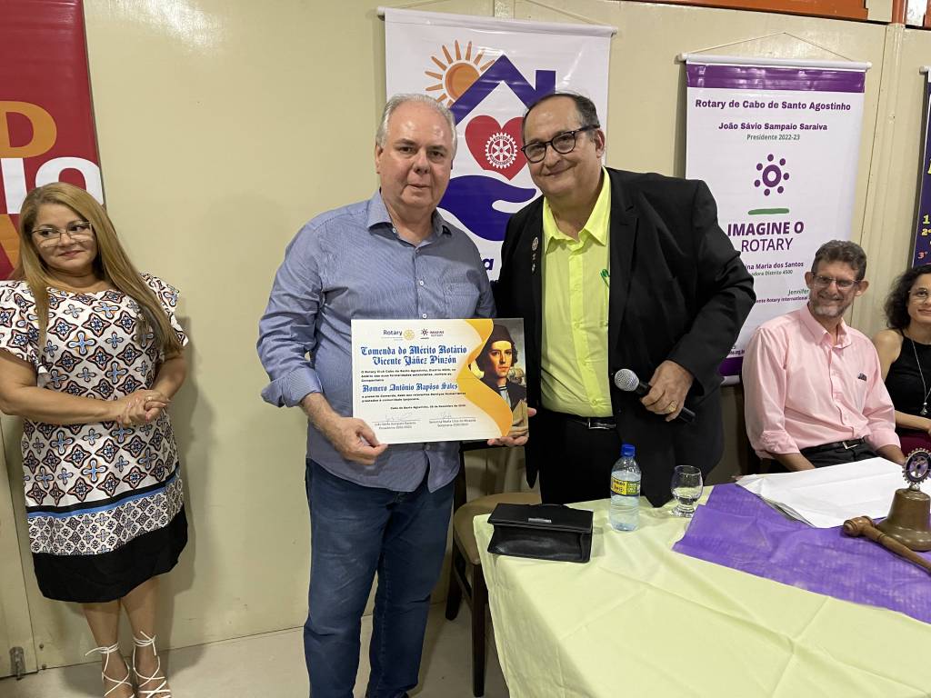 O companheiro Fernando Croccer Grava, rotariano e Veneravel Mestre da Loja Maçônica Alvorada da Paz nº 10, outorgou também a Comenda do Mérito Maçônico Joaquim Nabuco, para o historiador Amaro Vasconcelos Jr, e para a companheira e cunhada (esposa do irmão Edivaldo Marques, in memorian) Sônia Maria da Silva, parabenizando ao clube por oportunizar este momento de companheirismo entre rotaríamos, maçons, parceiros, familiares e convidados.