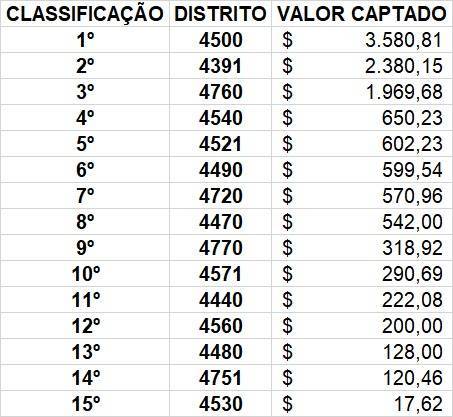Graças à contribuição de todos, com alegria informamos que nosso Distrito ficou em 1º lugar no Ranking de doações, dentre os distritos participantes da campanha, integrantes das regiões 29 e 31.