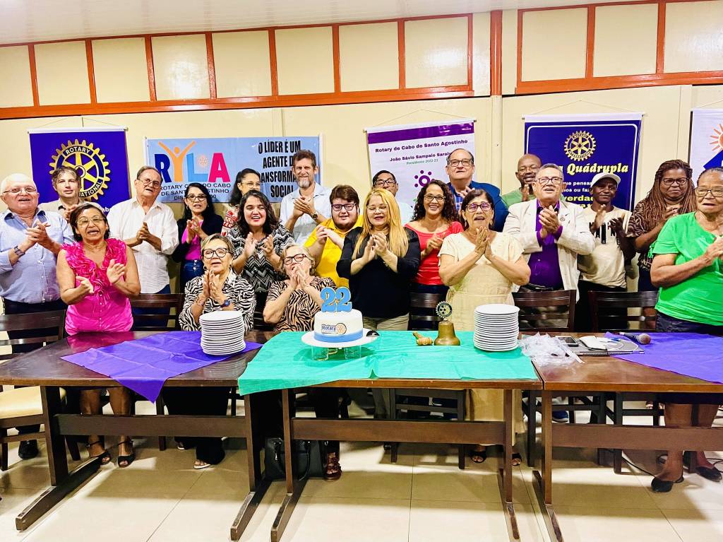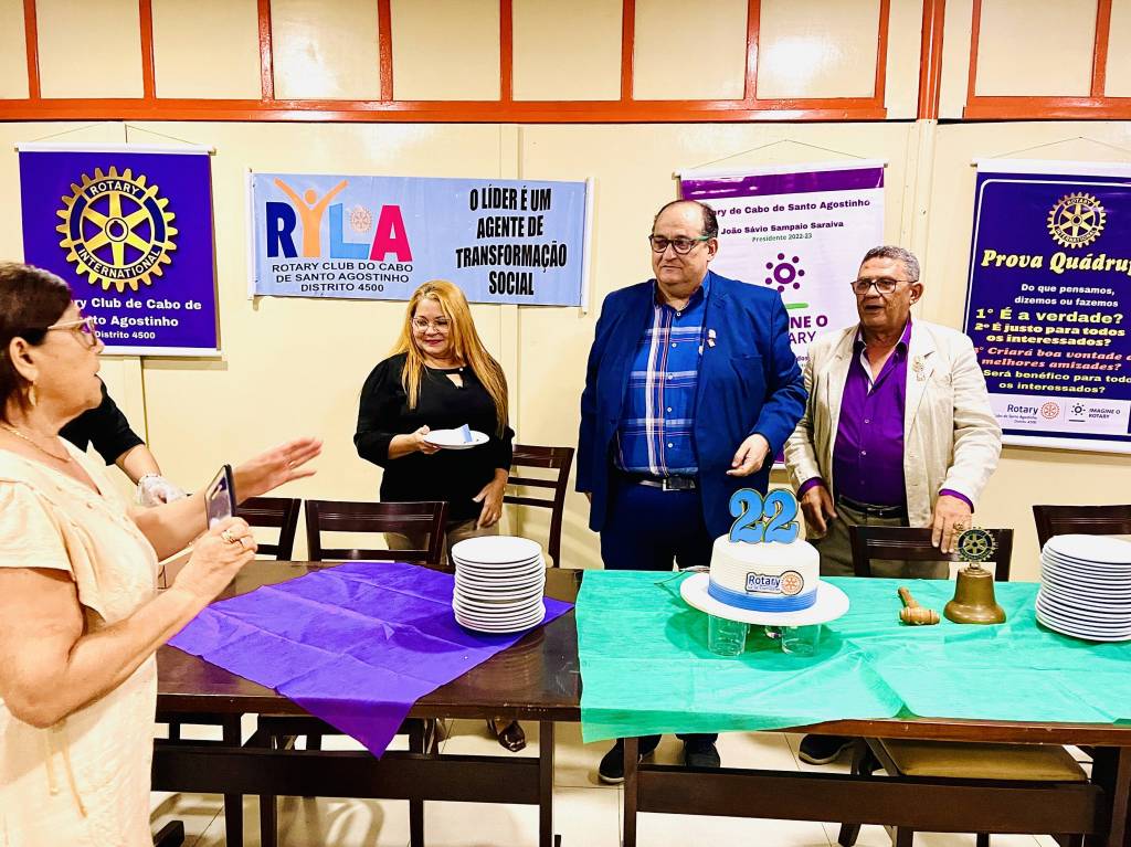 Os Rotarianos do Cabo de Santo Agostinho celebraram os 22 anos do Clube em uma jornada festiva na última quinta-feira (20), véspera de feriado, nas dependências do Restaurante e Pizzaria Chácara onde os associados se reúnem semanalmente.
