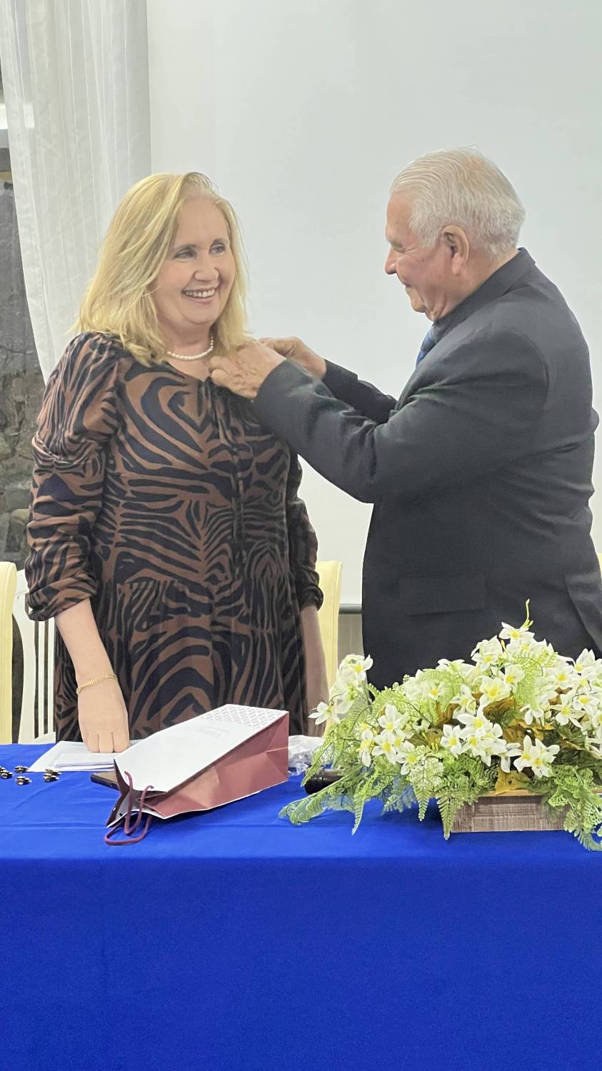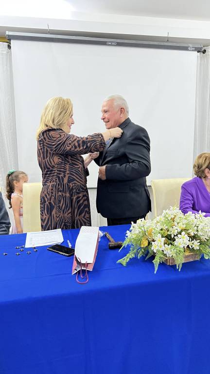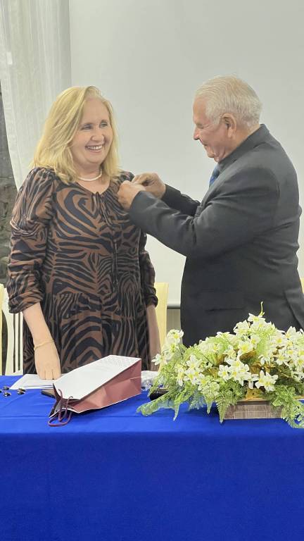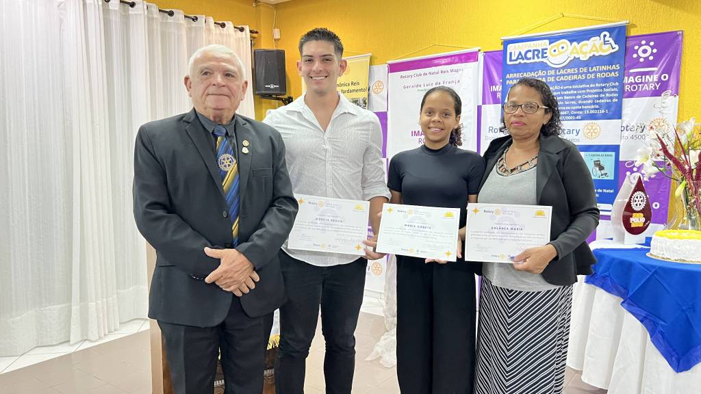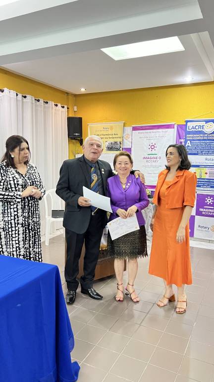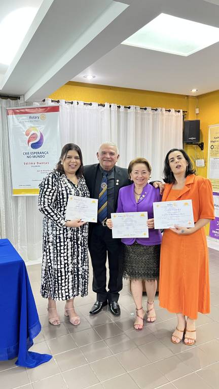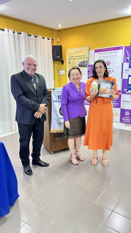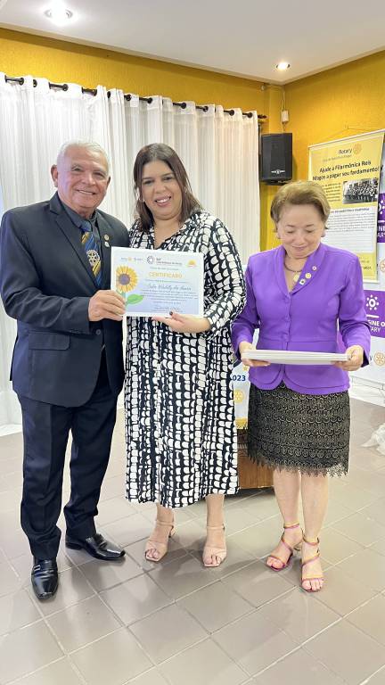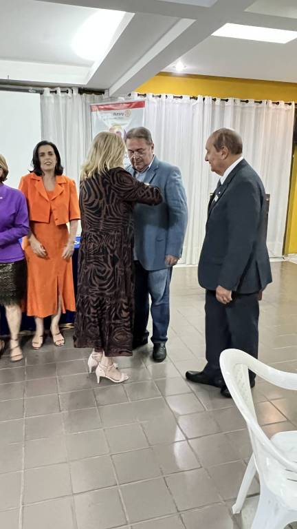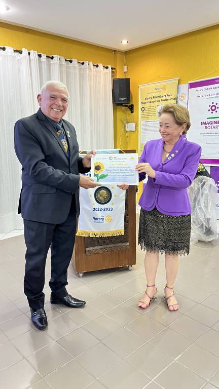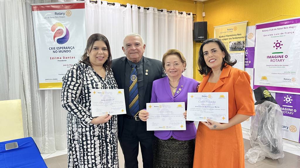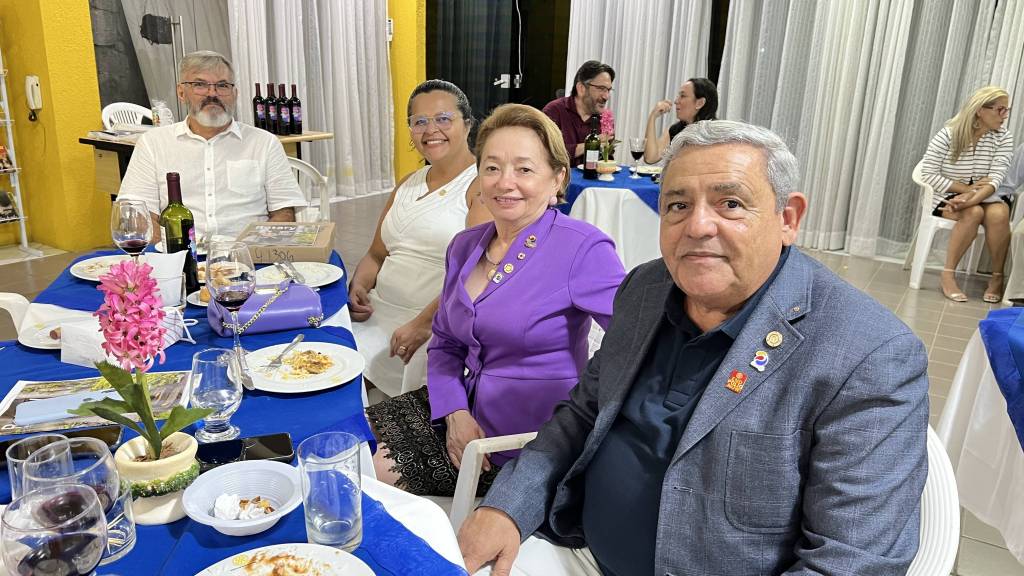 Tivemos a reflexão rotária feita pela companheira Sylvia. O Protocolo foi dirigido pelo companheiro João Augusto. Antes de passar formalmente o cargo, o Presidente 2022-23 Geraldo França ainda recebeu da Governadora 2022-23 Elequicina Santos homenagens pela atuação do clube na gestão que se encerrou, dentre as quais a 1ª classificação em doações à Fundação Rotária no Distrito 4500. O Presidente Geraldo França homenageou também Márcia Braga, como Ex-Diretora do Centro Social Dr. Mário Medeiros, que se constitui no nosso NRDC-Pium, Solânea Maria, a atual diretora do mesmo centro, e Maria Gorete, diretora do Projeto AMAR, na Vila de Ponta Negra. O Presidente Geraldo homenageou também as companheiras Elequicina, Érika e Ana Luiza Maia, por suas atuações no clube durante a gestão 2022-23. A Governadora Elequicina fez ainda uma homenagem à companheira Ana Luiza Maia, Coordenadora Distrital de Imagem Pública 2022-23. Na sequência, após a leitura do seu juramento, a Presidente 2023-24 Edilma Dantas deu posse ao seu conselho diretor. O juramento de posse do Conselho Diretor foi lido pela companheira Vice-Presidente 2023-24 e Secretária Érika Wendelly. Tivemos ainda a leitura da mensagem do Governador 2023-24 José de Miranda pela companheira Marize Tavares, Governadora Assistente 2023-24.