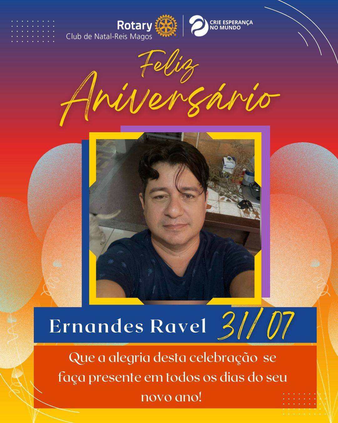 ANIVERSARIANTE DO DIA: ERNANDES RAVEL