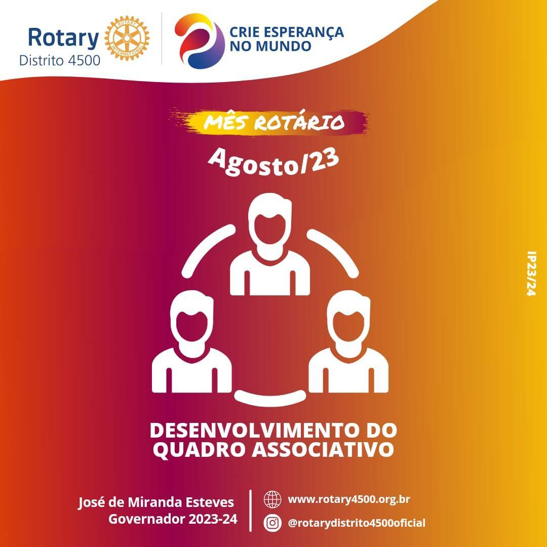 Em Rotary, o mês de agosto é dedicado ao Desenvolvimento do Quadro Associativo (DQA). Este tema engloba a associação, retenção e orientação de rotarianos. Nos Rotary Clubs de cidades do mundo inteiro, nossas pessoas em ação se reúnem para fortalecer seus laços e o compromisso assumido com o bem-estar humano.