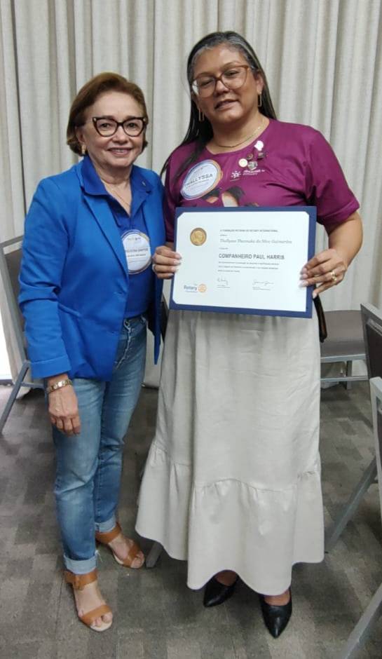 No último sábado, 29/07, a Governadora D4500 2022-23 Elequicina Santos entregou mais um Título Paul Harris à companheira Thalyssa Thannaka Guimarães, Presidente 2022-23 do Rotary Club de Catolé do Rocha/PB.
