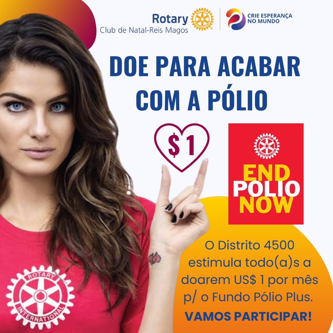 O RC Natal-Reis Magos está participando da campanha distrital para incremento de doações ao Fundo Pólio Plus. A meta é que cada associado(a) faça uma doação equivalente a US$ 1.00 por mês.