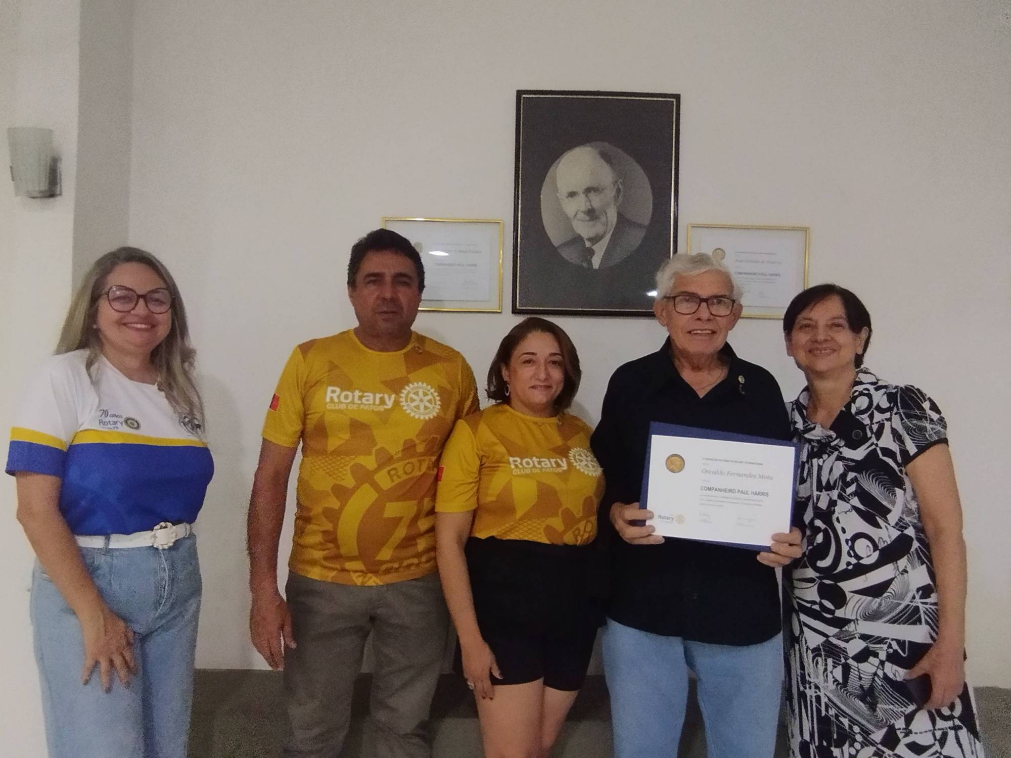 No dia 27 de Julho 2023 realizou-se o primeiro companheirismo da gestão presidida pela companheira Roméria Garcia 2023/2024, do Rotary Club de Patos, uma noite de muita emoção e confraternização entre as famílias dos associados, para abrilhantar ainda mais o evento tivemos a entrega de um título Companheiro Paul Harris ao Companheiro Osvaldo Mota, honraria que representa o reconhecimento pelo trabalho e doação ao longo de tantos anos de dedicação ao RC de Patos. A homenagem foi uma iniciativa da companheira Governadora Assistente Lindogenia Queiroga, gestão 2022/2023, juntamente com a colaboração do companheiro Venâncio Lucena e os demais sócios do Club, como também da governadora do Distrito 4500, Elequicina Santos, juntamente com a secretaria distrital Erika Wendelly; esse título além de ser um dos mais importantes reconhecimentos da Fundação do Rotária, colabora com uma meta estabelecida pela gestão do Rc de Patos 2022/2023, que teve como presidente o companheiro Eldinê Miranda.