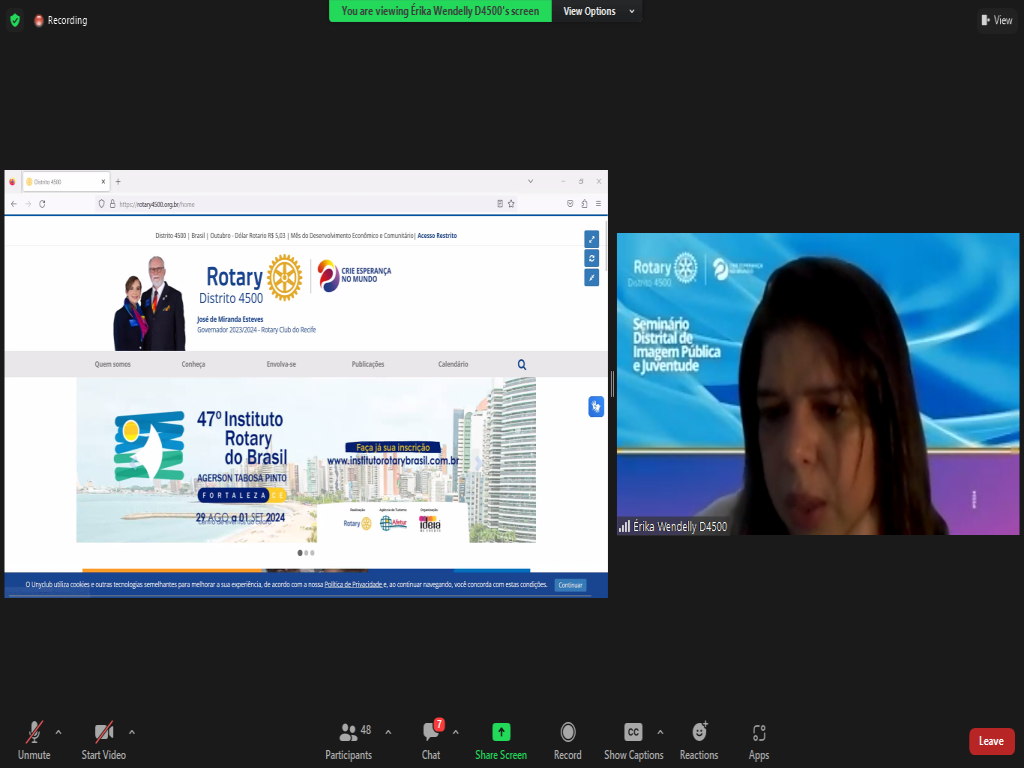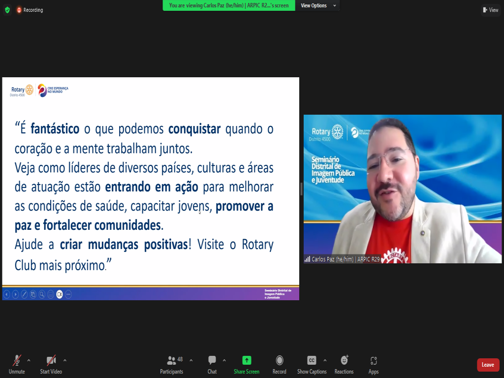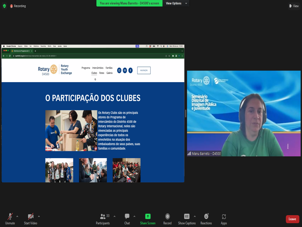 No sábado 28/10 participamos do Seminário Virtual de Imagem Pública e Juventude do Distrito 4500. Um momento de ampliarmos e compartilharmos conhecimento.
