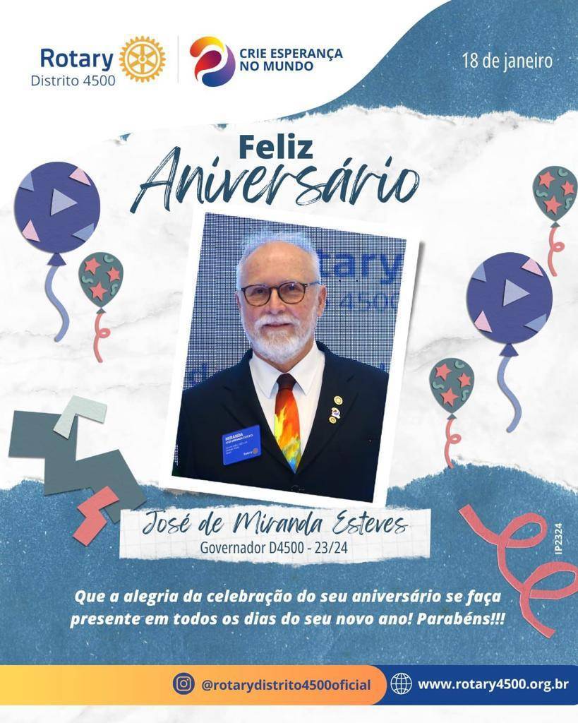 ANIVERSARIANTE DO DIA: GOVERNADOR 2023-24 D4500 JOSÉ DE MIRANDA