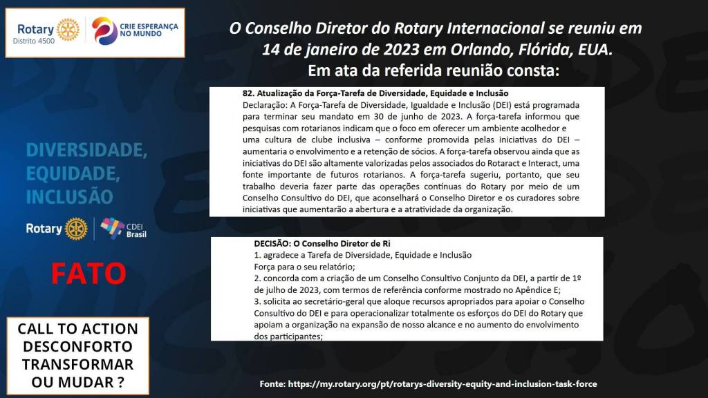 Todas as quintas-feiras às 21h a partir de 14.09.2023 e mergulhe conosco na autêntica prática online e presencial da Diversidade Equidade e Inclusão em Rotary !