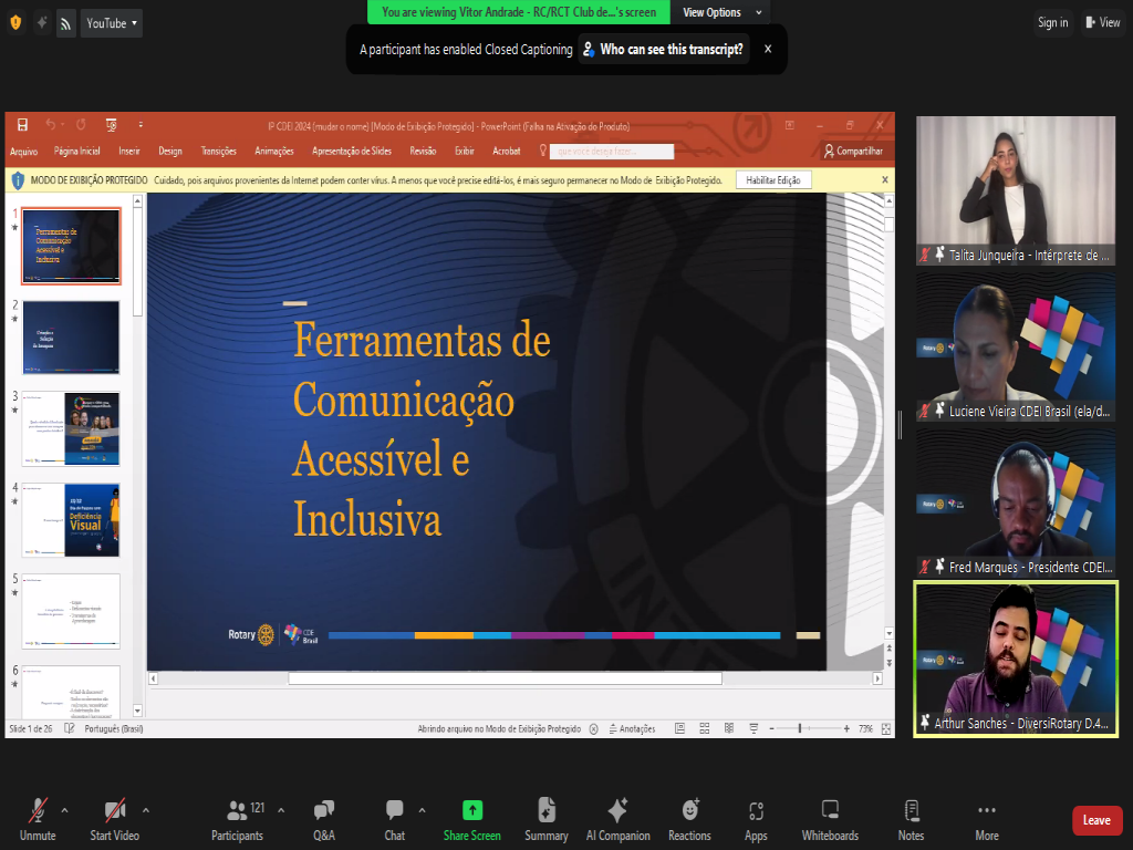 Foi realmente um momento de muito aprendizado, com muita informação compartilhada. O Rotary nos proporciona um constante aprendizado, pois está imbuído da missão de se tornar mais inclusivo e diverso. Estamos juntos neste desafio, dispostos a aprender e evoluir. Capacitação constante: isso é Rotary!