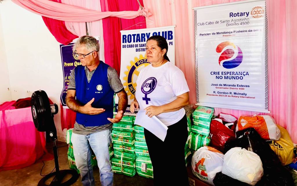 A parceria entre o Rotary Club Cabo de Santo Agostinho e a Associação das Mulheres foi marcada por uma troca mútua de apoio e união. O Rotary Club Cabo de Santo Agostinho, representado por seus membros, entregou 200 pacotes de fraldas, roupas e mantimentos à presidente do Centro, Neide Salles e sua equipe diretiva. Essas doações serão fundamentais para auxiliar as famílias mais carentes da região.