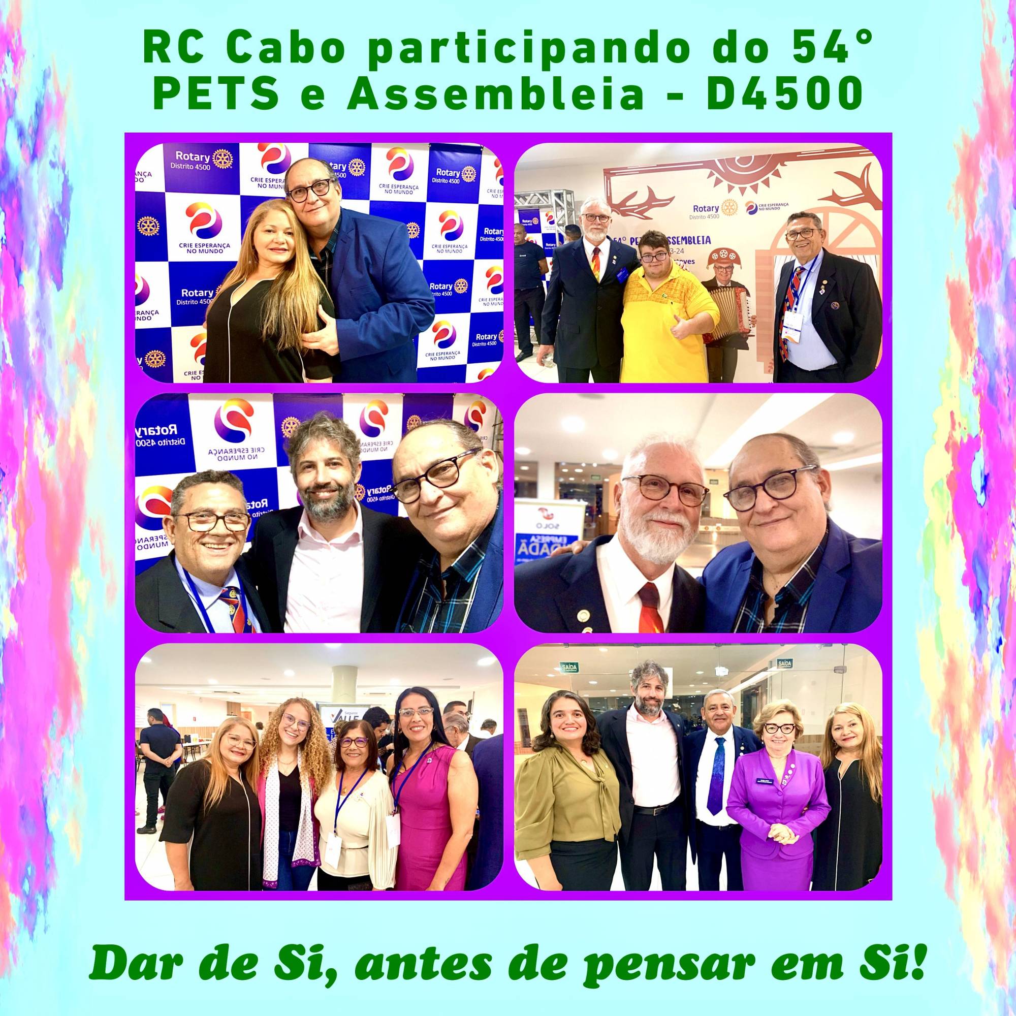 Os companheiros do Rotary Club Cabo de Santo Agostinho participaram ativamente da 54ª PETS (President Elect Training Seminar) e Assembleia Distrital, que aconteceu nos dias 10 a 12 de março de 2023 no SENAC de Caruaru. Este encontro teve como principal objetivo preparar os líderes rotários para o ano 2023-24, sob a liderança do Governador José Esteves Miranda.