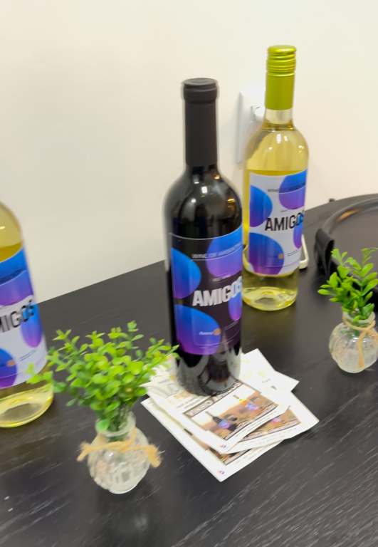 O vinho AMIGOS surgiu de uma parceria com a NWines, importadora de vinhos. São vinhos originais de Mendoza - Argentina, nas opções tinto e branco. Pelo valor de R$ 50,00 é possível adquirir um vinho em embalagem presenteável.