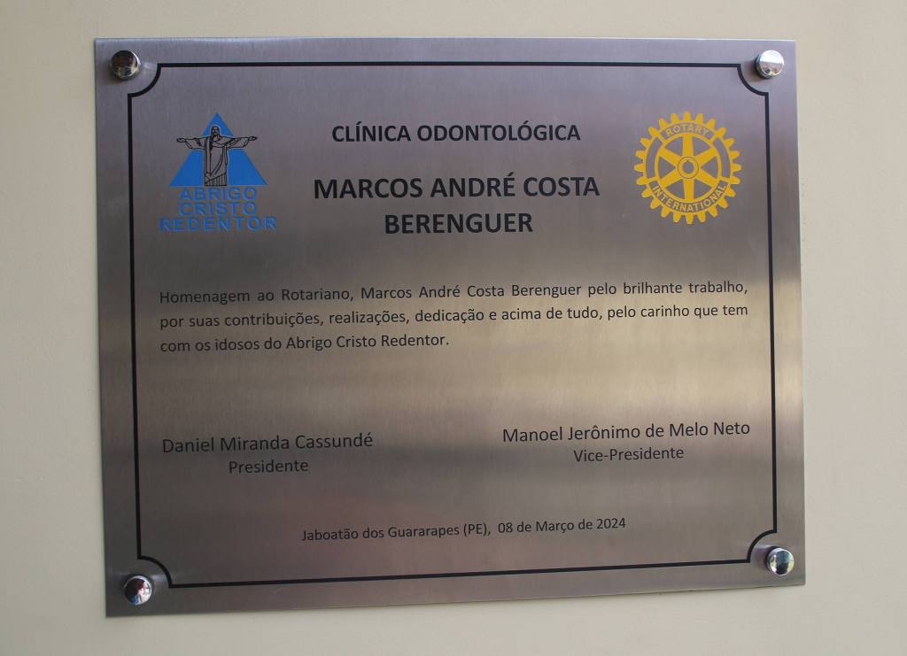 Mais um sonho realizado no Abrigo Cristo Redentor. A Clínica de Odontologia, que foi uma luta constante por mais de um ano. A Clínica Odontológica Marcos André Costa Berenguer. Sua dedicação, talento e comprometimento não passaram despercebidos, e é mais do que justo reconhecer e lhe homenagear, pondo seu nome nessa clínica, que você tanto lutou por ela.