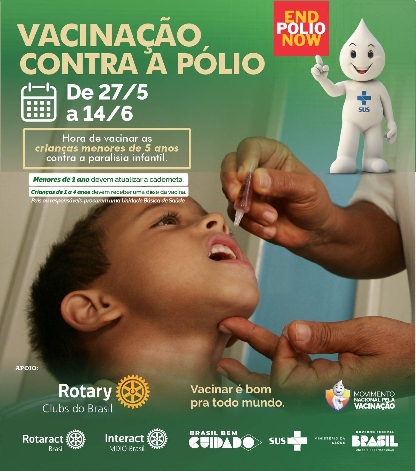 Também vamos participar ativamente nos postos de vacinação e na divulgação da *Prioridade nº 1 do Rotary que é a Erradicação da Pólio.*