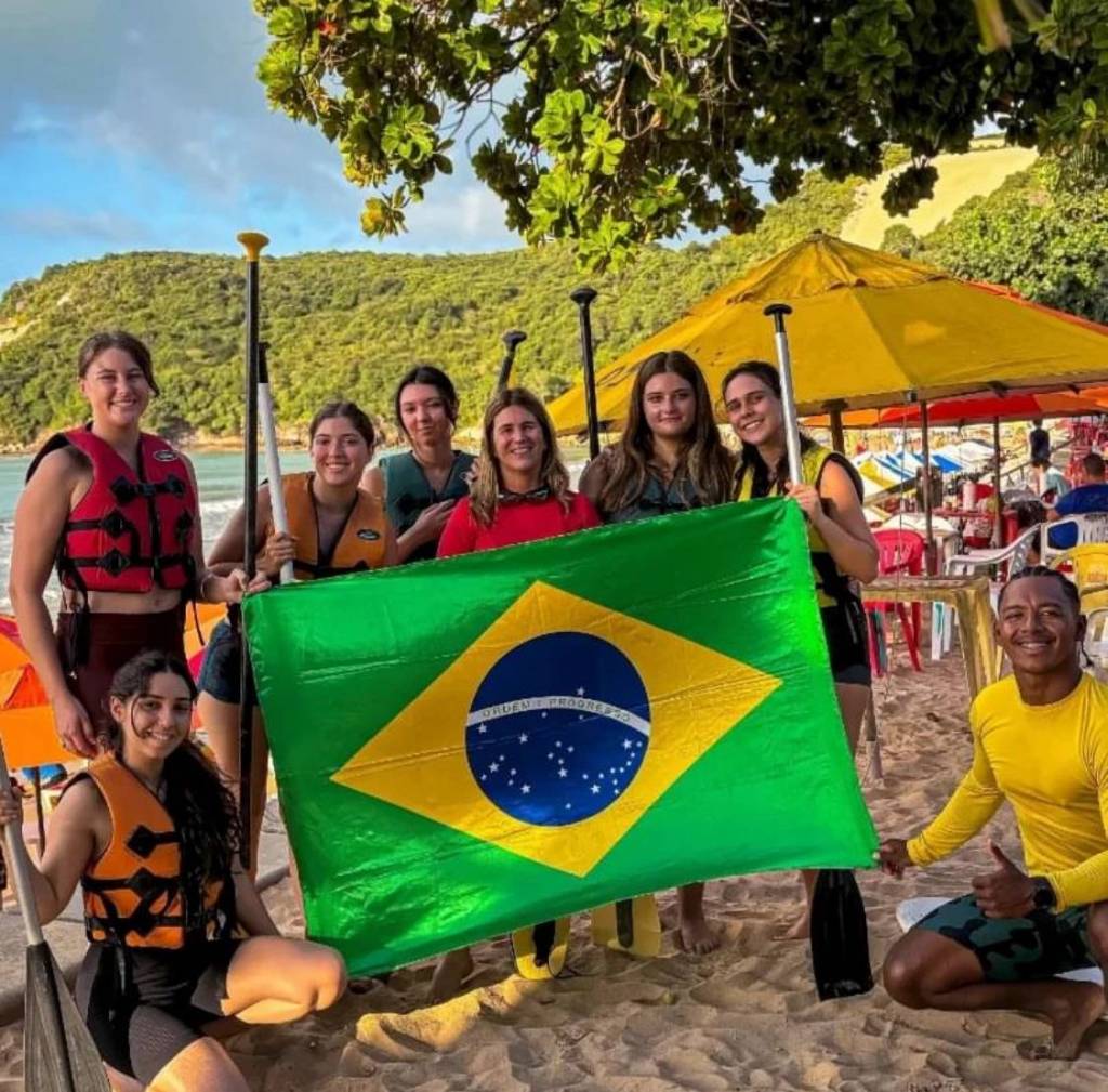 Uma segunda turma de estudantes intercambistas do programa de curta duração (Short Term Program) participa de aula de Stand Up Paddle na Praia de Ponta Negra, em Natal, com a equipe da Stand-Up Natal (@standupnatal).