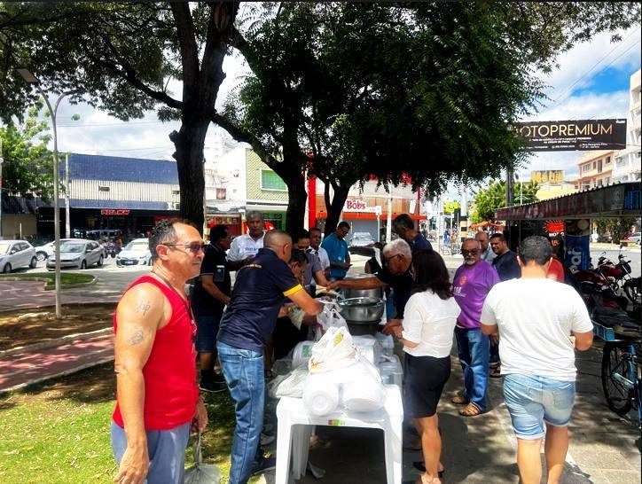Vários companheiros do clube participaram da ação de forma direta literalmente colocando a mão na massa, quer dizer no feijão. Esta primeira feijoada solidaria da gestão aconteceu no centro da cidade na Praça Getúlio Vargas.