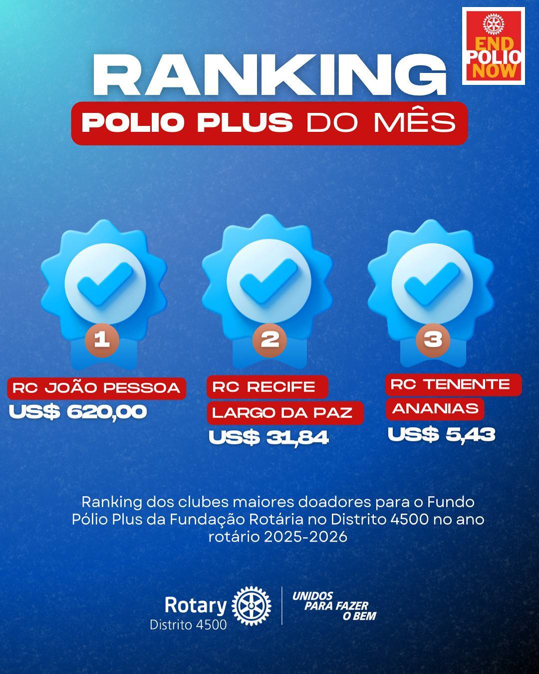 Ranking Doação Polio Plus - Julho 25/26 Distrito 4500